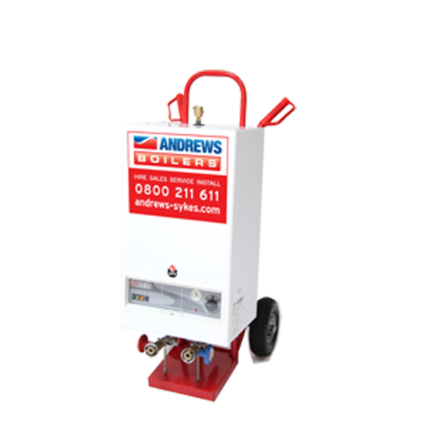 These robust electric boilers offer a reliable solution for generating heating and hot water, requiring only a 415V 32amp three phase power supply in order to function. Easily connected to existing systems, the 22kW electric boiler is extremely efficient and can be installed in tight spaces due to its small dimensions and excellent mobility courtesy of a wheeled sack truck mounting configuration. This model is suitable for a multitude of applications including heating only and smaller hot water services via our plate heat exhanger range. Primarily designed for use on underfloor heating projects and screed curing to complete operational systems, the 22kW electric boiler features a fully controllable thermostat to enable gradual temperature rises when required. These units feature stage two electric elements to conserve energy and limit power consumption, keeping running costs low. Ideal for temporary breakdown replacements, the 22kW boiler is equally suitable for use on early stage construction projects, manufacturing applications and in the events industry.