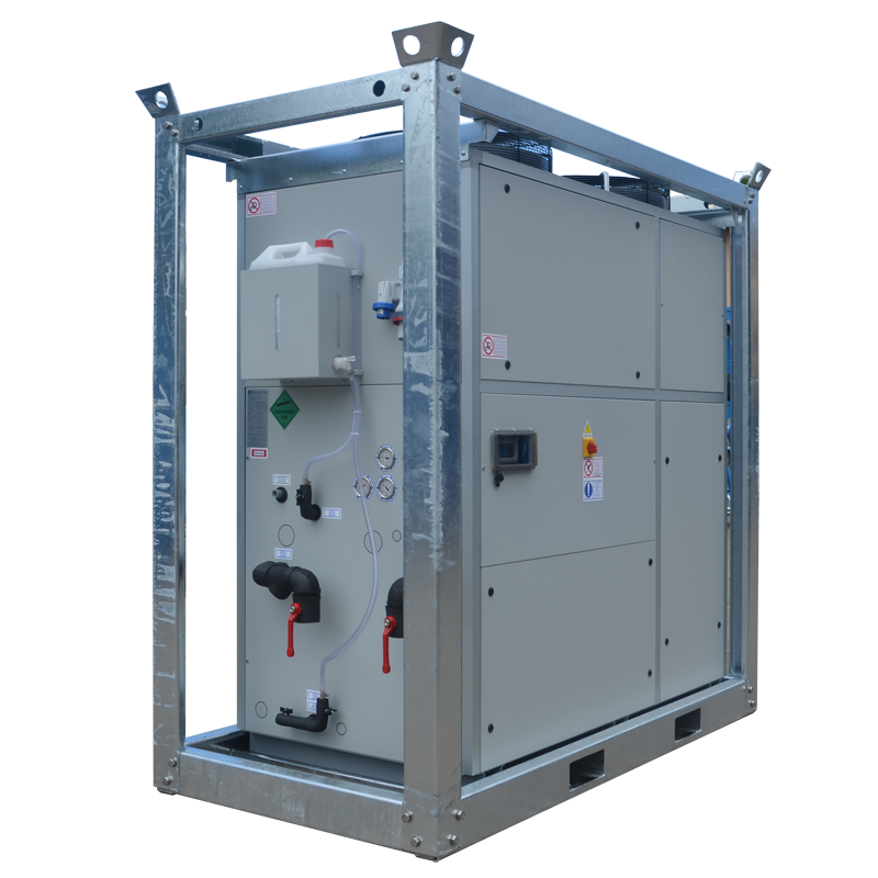 The 50kW Series 2 chiller is an economical fluid chiller suitable for use in all industrial and commercial applications. By connecting this portable chiller to your fixed cooling systems, this unit has the ability to immediately produce large volumes of chilled water and cool fluids down to -5ยฐC almost instantly. When used in combination with our range of fan coils and air handling units, the 50kW Series 2 chiller unit offers high capacity cooling ideal for a wide range of industries including food and beverages, manufacturing and petrochemicals and refineries.