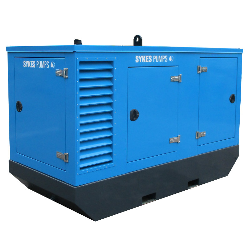 The HP150 Super Silenced is a low-noise high performance pump that has been purposefully manufactured for projects where very quiet operation is required. Specifically designed for use in jetting, dust suppression and temporary fire pump applications, the HP150 Super Silenced combines efficiency with a suitability to unattended operation. Ideal for scenarios where standard pump pressures are inadequate, this unit can deliver heads up to 90 metres and maximum flows of 100 litres per second. This 6โ jetting pump incorporates a built-in fuel tank with a 170-litre capacity, enabling it to run for up to 24 hours before requiring refuelling. Featuring the Sykes Univac priming system, this pump utilises a 25 cfm rotary vacuum pump to allow automatic priming and re-priming from dry.