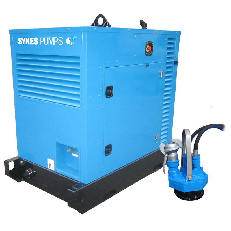 The Sykes Hydraset 50 is a hydraulic submersible pump solution comprising of a power pack, a pump end and a set of 20m hydraulic hoses. It has been designed for use in construction, quarrying, marine and wastewater applications in addition to other remote locations where electricity is not available on site. The super silenced Hydrapak is powered by a Kioti 3A diesel engine and can be fitted with a Chalwyn valve and spark arrestor to allow use in hazardous environments. Capable of delivering heads of up to 41m, the Hydraset 50 uses biodegradable oil for environmentally friendly functionality.